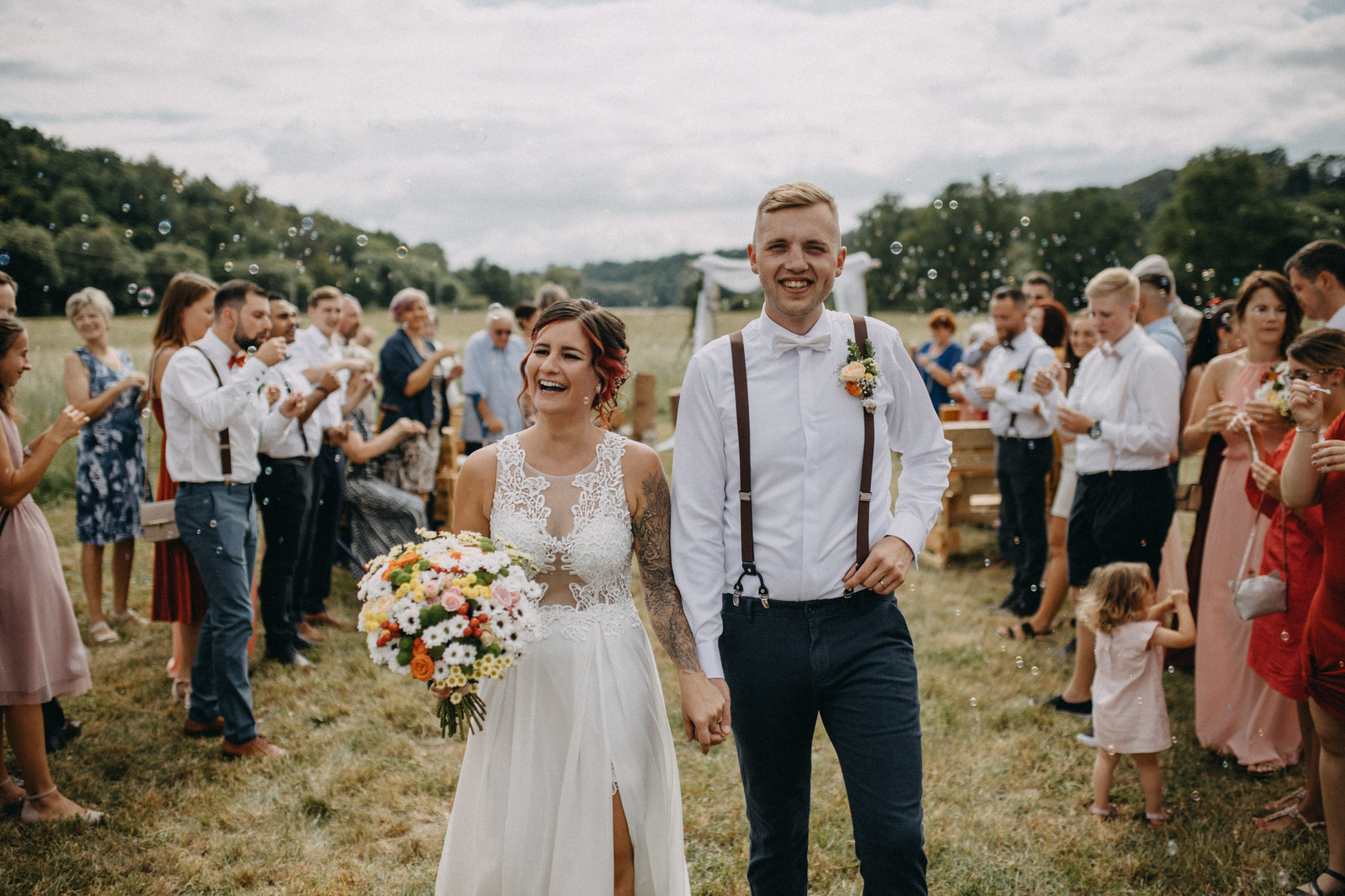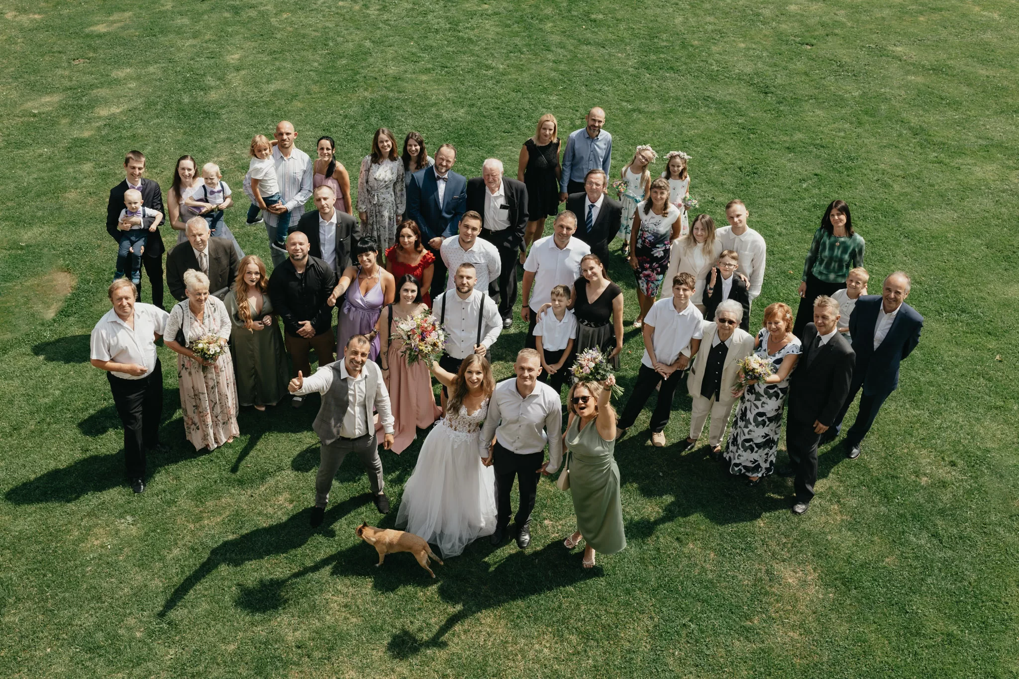 špalír, aby se nerozutekli hosti po gratulaci, odkud fotit(štafle, okno), srdce