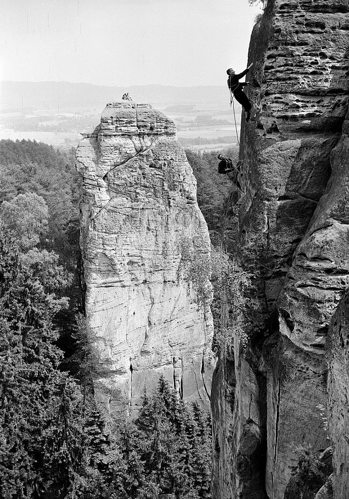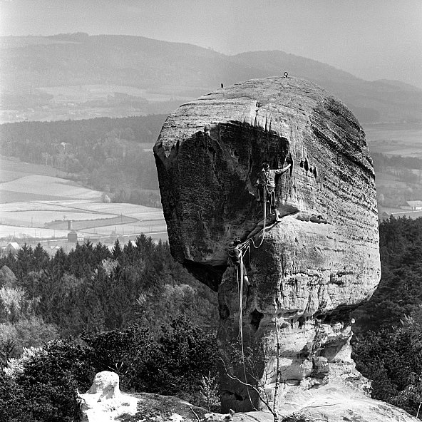 Na Hruboskalsku také fotil slavný fotograf Vilém Heckel (1918-1970). Používal velké středoformátové fotoaparáty Hasselblad a černý svitkový film. Nejradši mam fotku výstupu na úzkou neznámou s Troskama v pozadí, která vysí na zdi v Turnově v expozici horolezectví. Vilém zahynul na České expedici na horu Huascarán v Peru, kde se utrhla lavina a zabila všechny členy výpravy v roce 1970. Má svoje jméno s ostatními členy na cintoríně – hřbitově horolezců. O jeho archiv se stará jeho dcera Helena, která pravidelně pořádá výstavy.